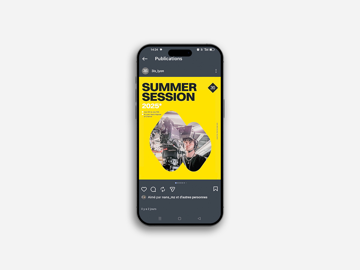 CrĂ©ation pour l’identitĂ© visuelle de l’Ă©vĂ©nement en accord avec la charte graphique 3iS International.Â